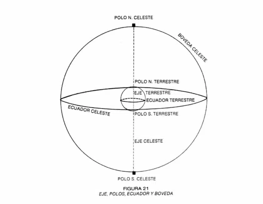 A partir de este momento se van a considerar las posiciones y movimientos aparentes de los astros respecto a la Tierra, considerando a esta última como inmóvil y con su eje en posición vertical (figura 21).